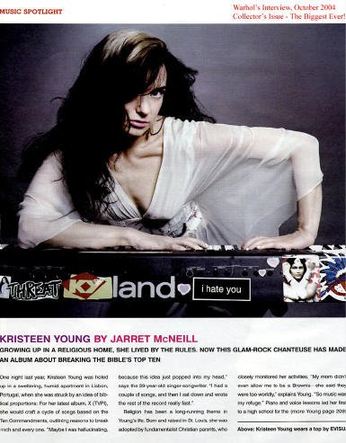 One night last year, Kristeen Young was holed up in a sweltering, humid apartment in Lisbon, Portugal, when she was struck by an idea of biblical proportions: For her latest album, X (TVPI), she would craft a cycle of songs based on the Ten Commandments, outlining reasons to break each and every one. "Maybe I was hallucinating, because this idea just popped into my head," says the 29-year-old singer-songwriter. "1 had a couple of songs, and then I sat down and wrote the rest of the record really fast."